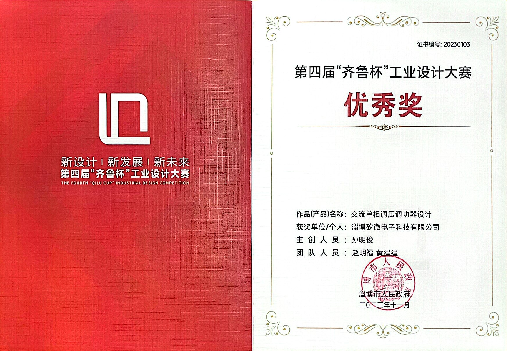 在12月份舉辦的第四屆“齊魯杯”工業(yè)設(shè)計大賽中,我司獲得“優(yōu) 秀獎”獎項。